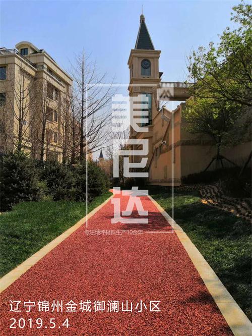 遼寧錦州金城御瀾山小區(qū)位于松山新區(qū)松山新區(qū)光彩立交橋南,施工面積6000余平米,地面主要為紅色,透水混凝土厚度13公分,