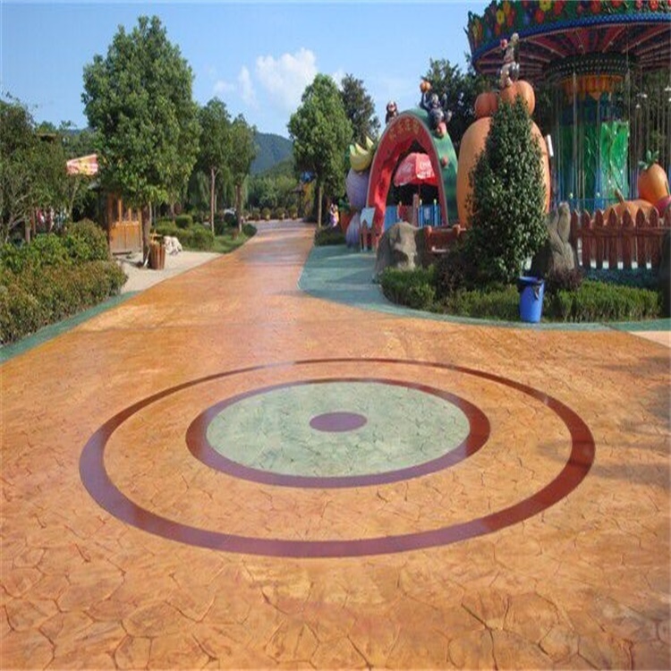 4.彩色脫模粉處理:施工的表面均勻拋撒彩色脫模粉,將整個(gè)表面覆蓋,同時(shí)在模具的表面也上一些脫模粉;