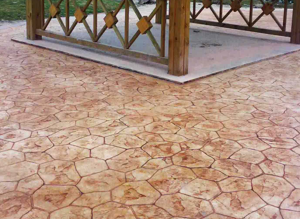 4.彩色脫模粉處理:施工的表面均勻拋撒彩色脫模粉,將整個表面覆蓋,同時在模具的表面也上一些脫模粉;